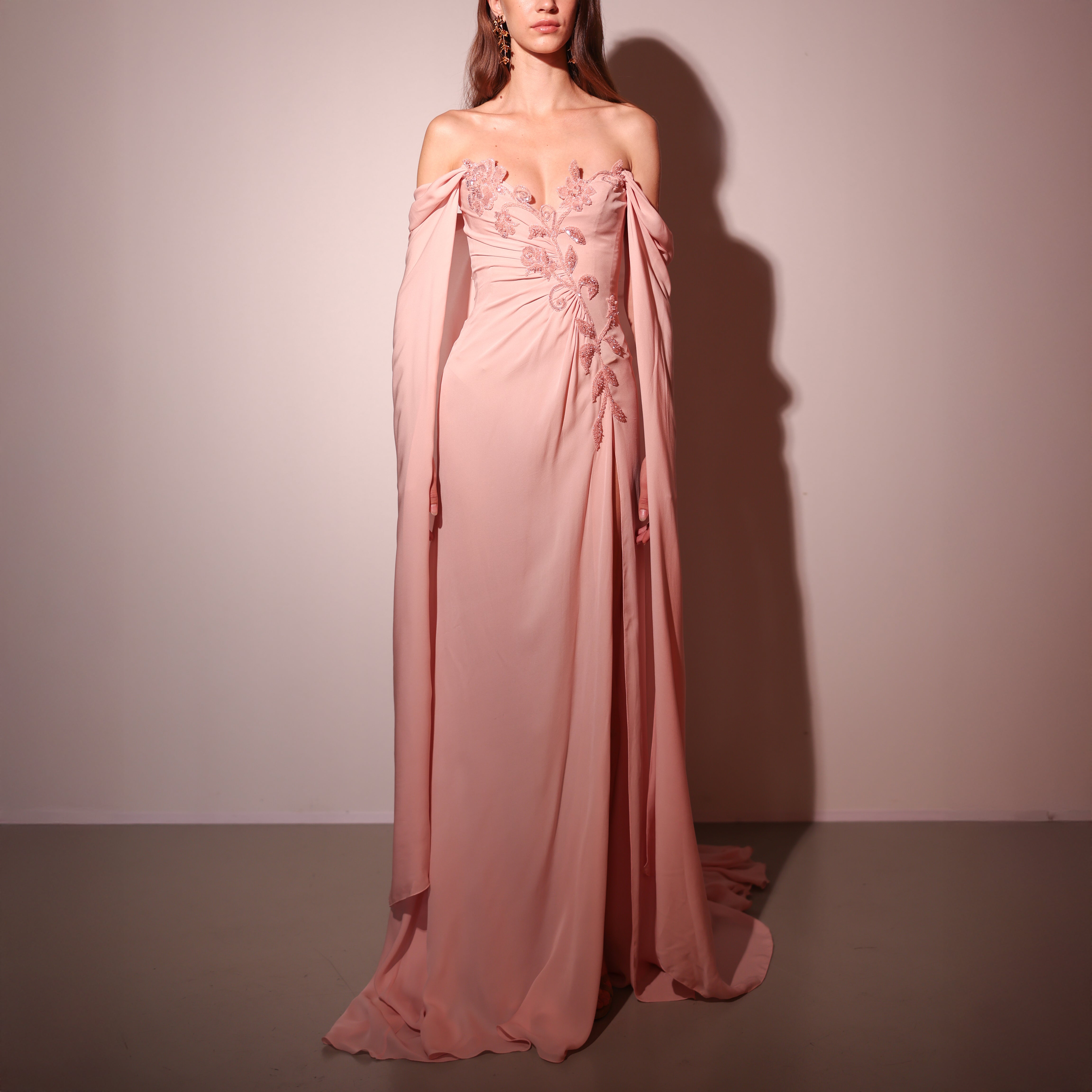- Flowing long open sleeves