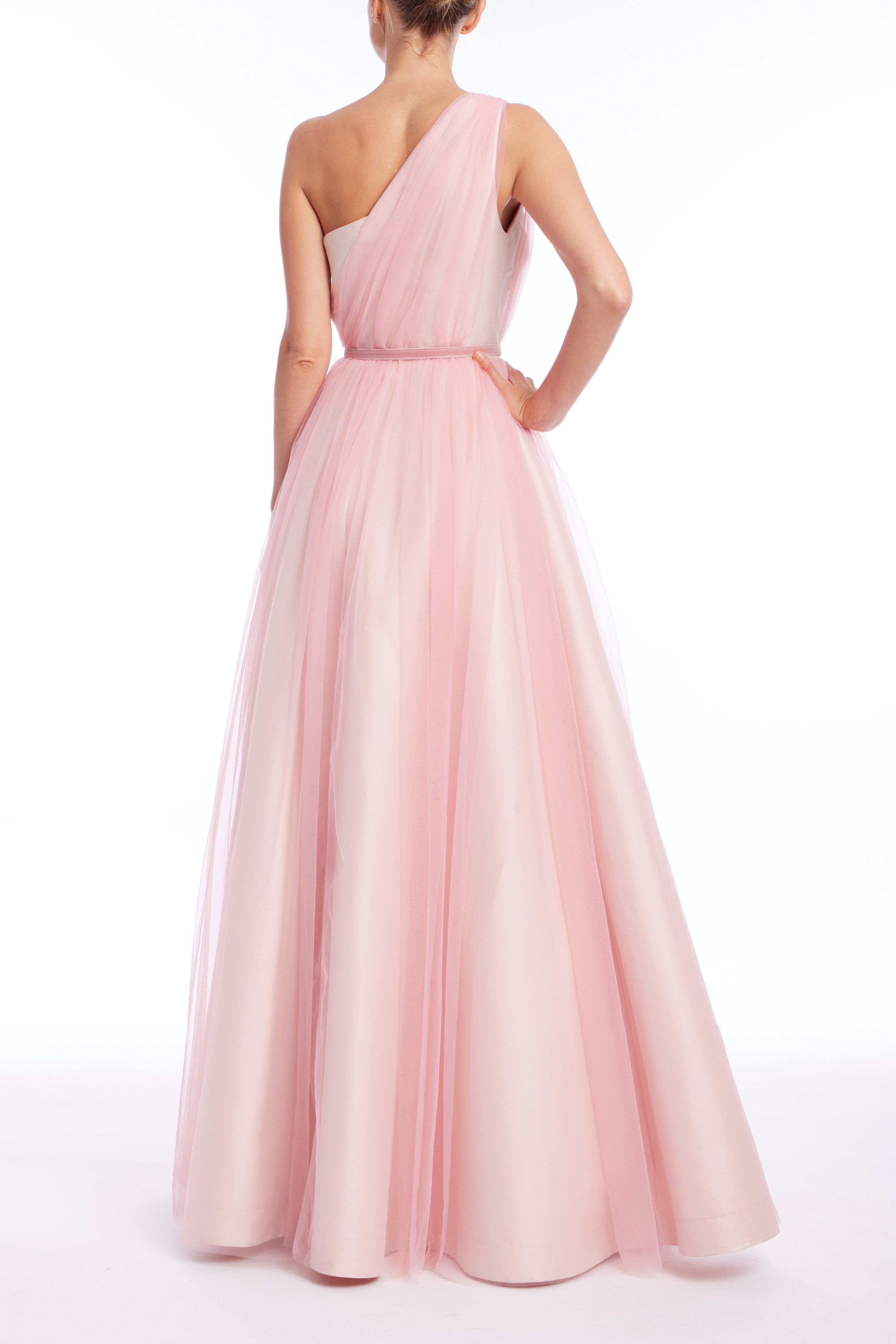 One-shoulder design creates a balanced, flattering look. True to size with a flowing, A-line silhouette that gracefully moves with you. Tulle fabric. -