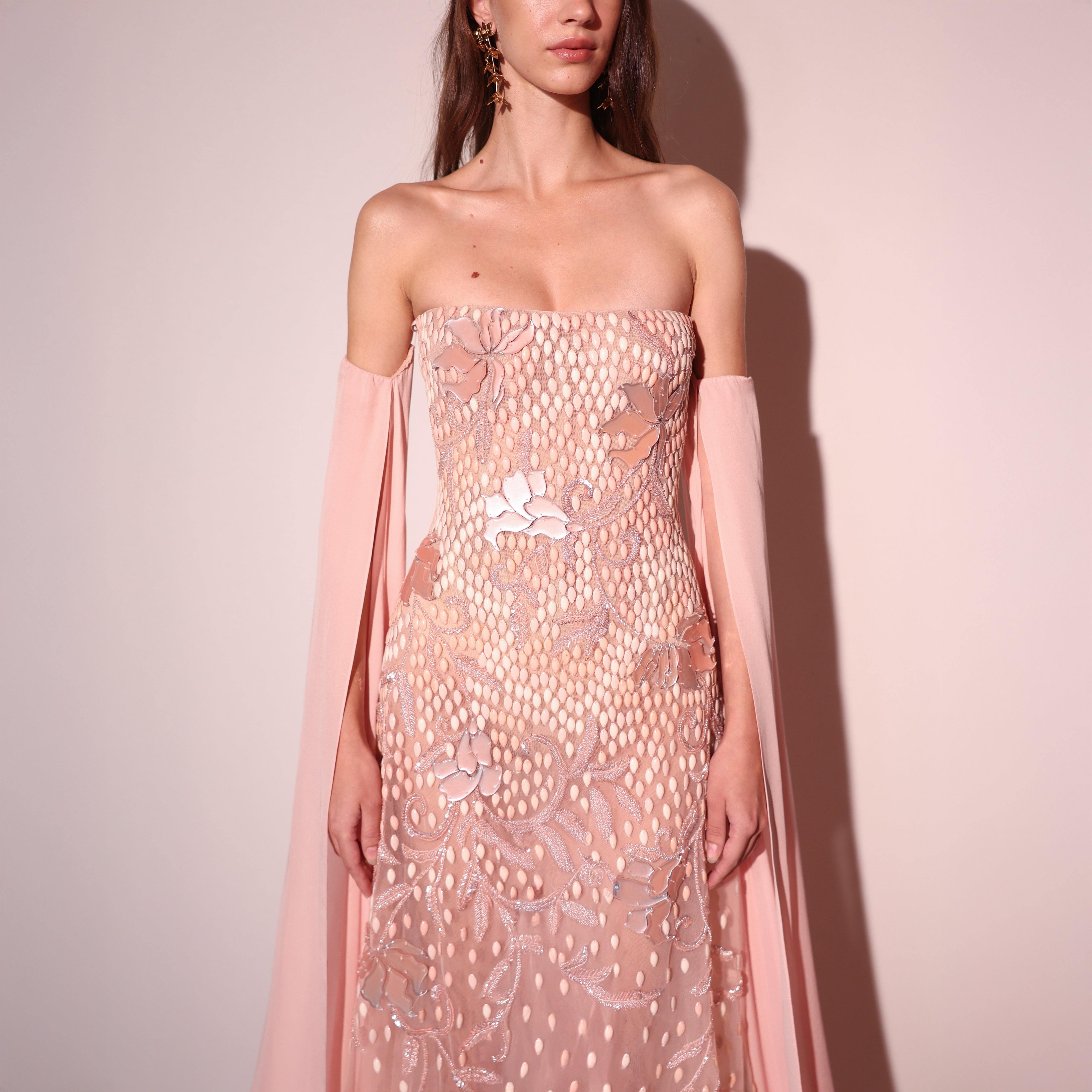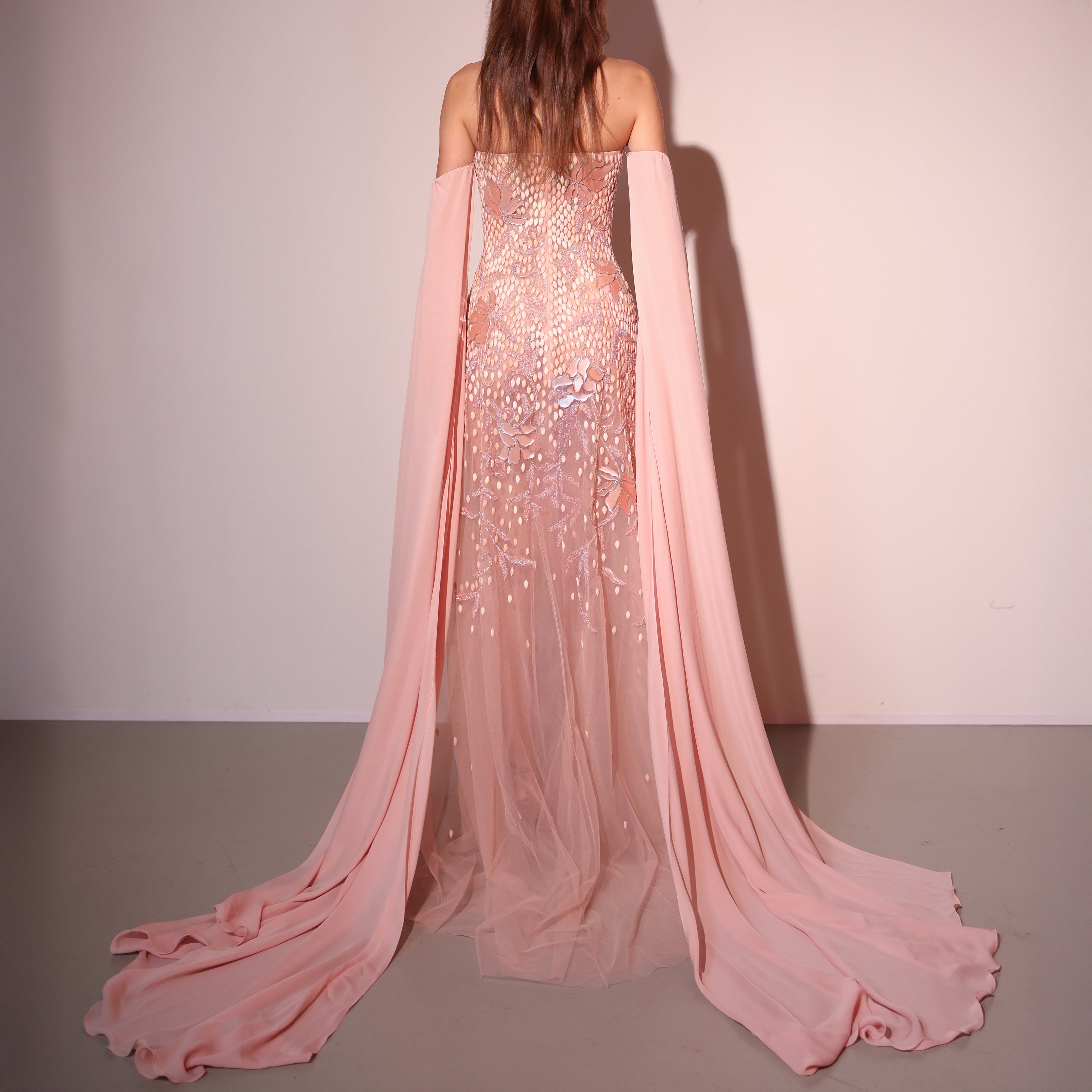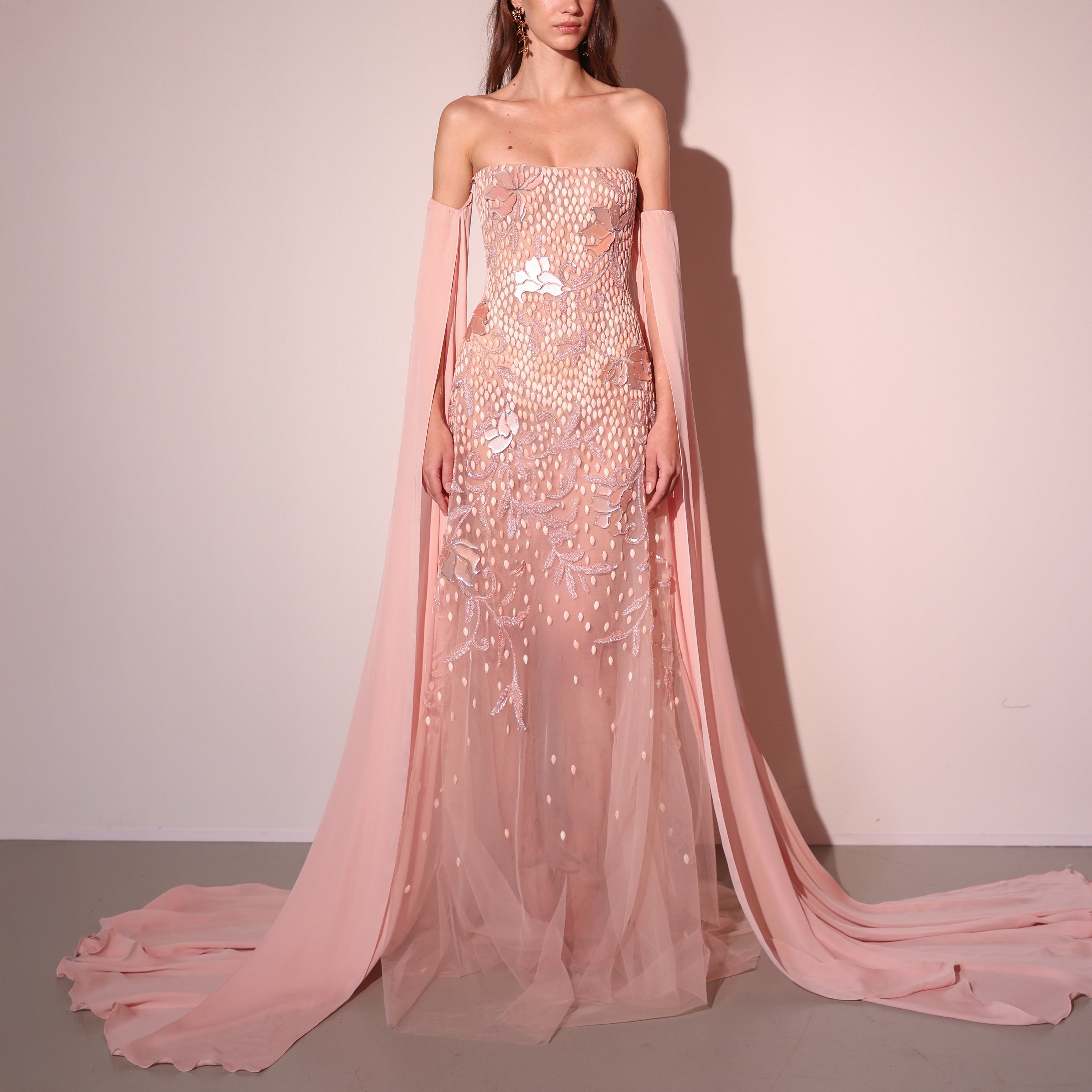 - Beaded tulle with resin acrylic embellishments