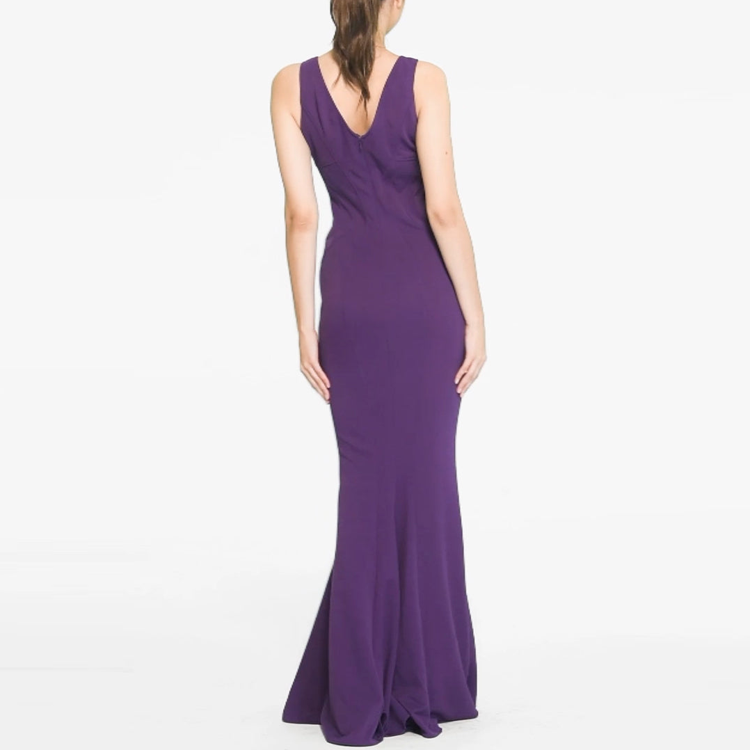 Look stunning in this gorgeous Veronica gown from Zac Zac Posen with sculptural seems. It features a V neckline and back, sleeveless thin straps and a formfitting mermaid silhouette. Back concealed zipper closure.