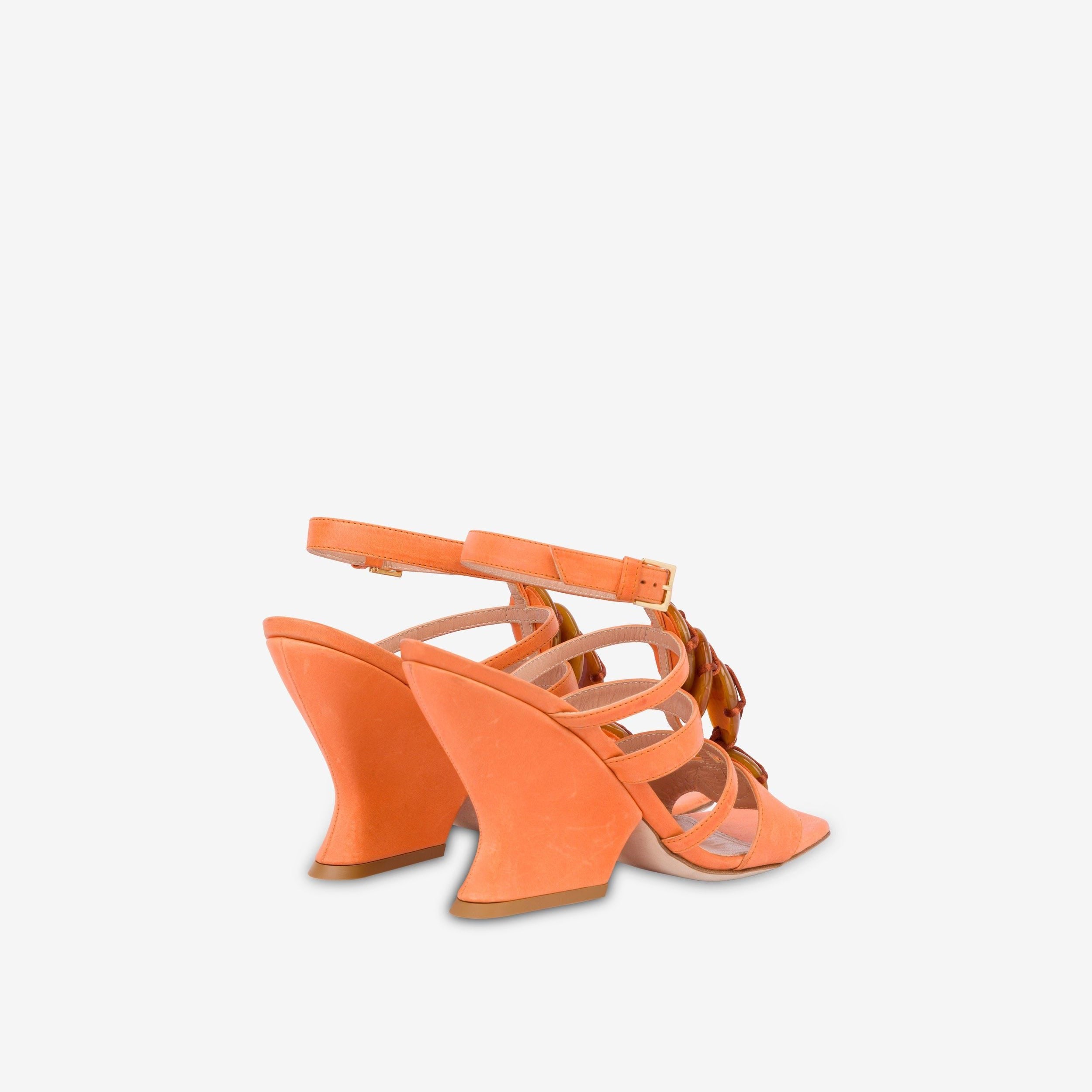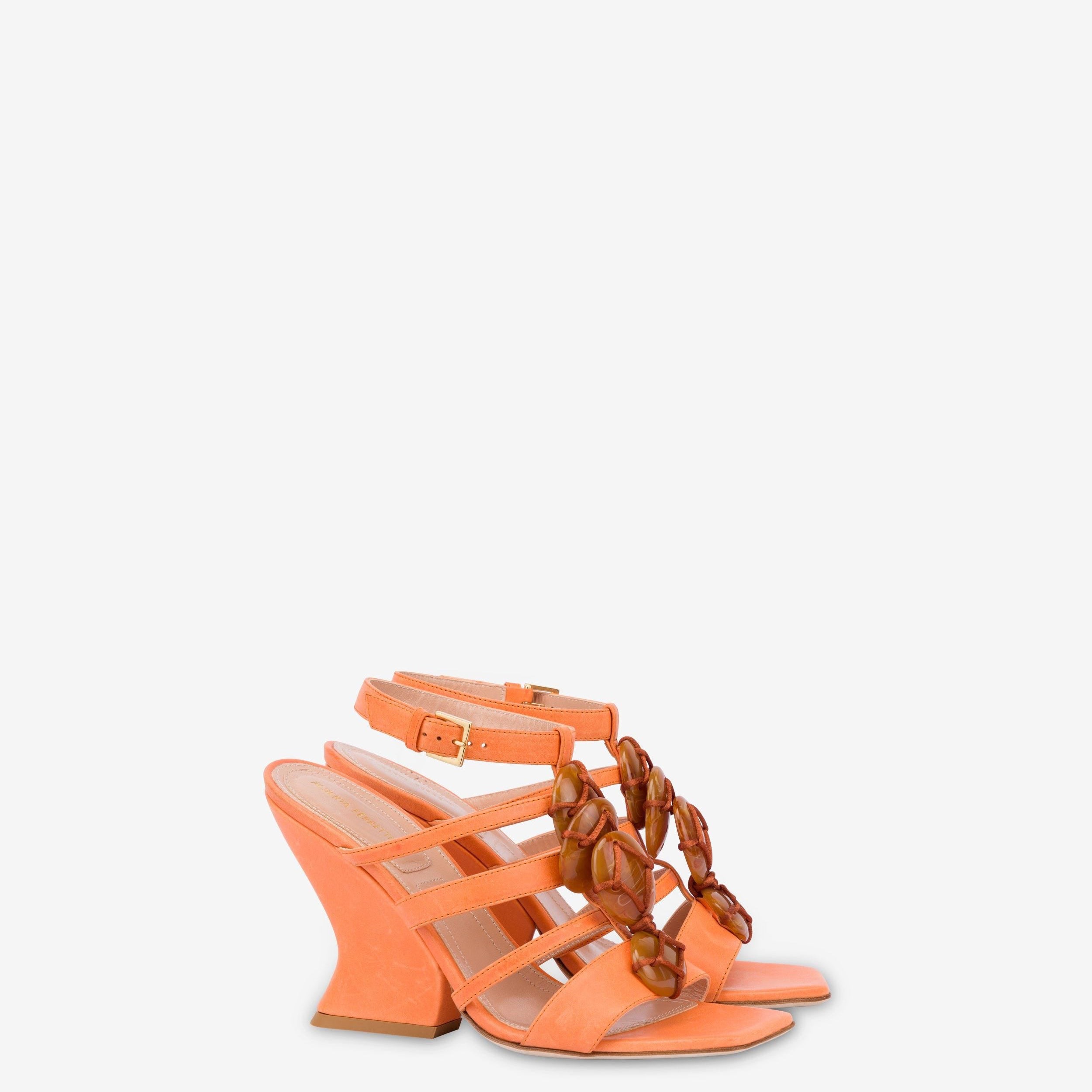 Orange Calfskin Sandals With Summer Feeling Gemstones