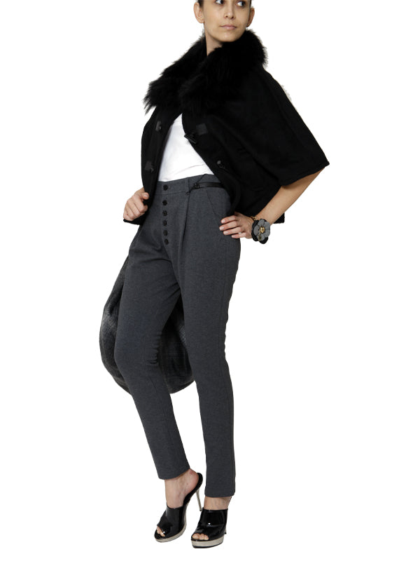 fit and a style. It's a classic yet avant-garde. It features Side pockets. pleated front, button/zip front.