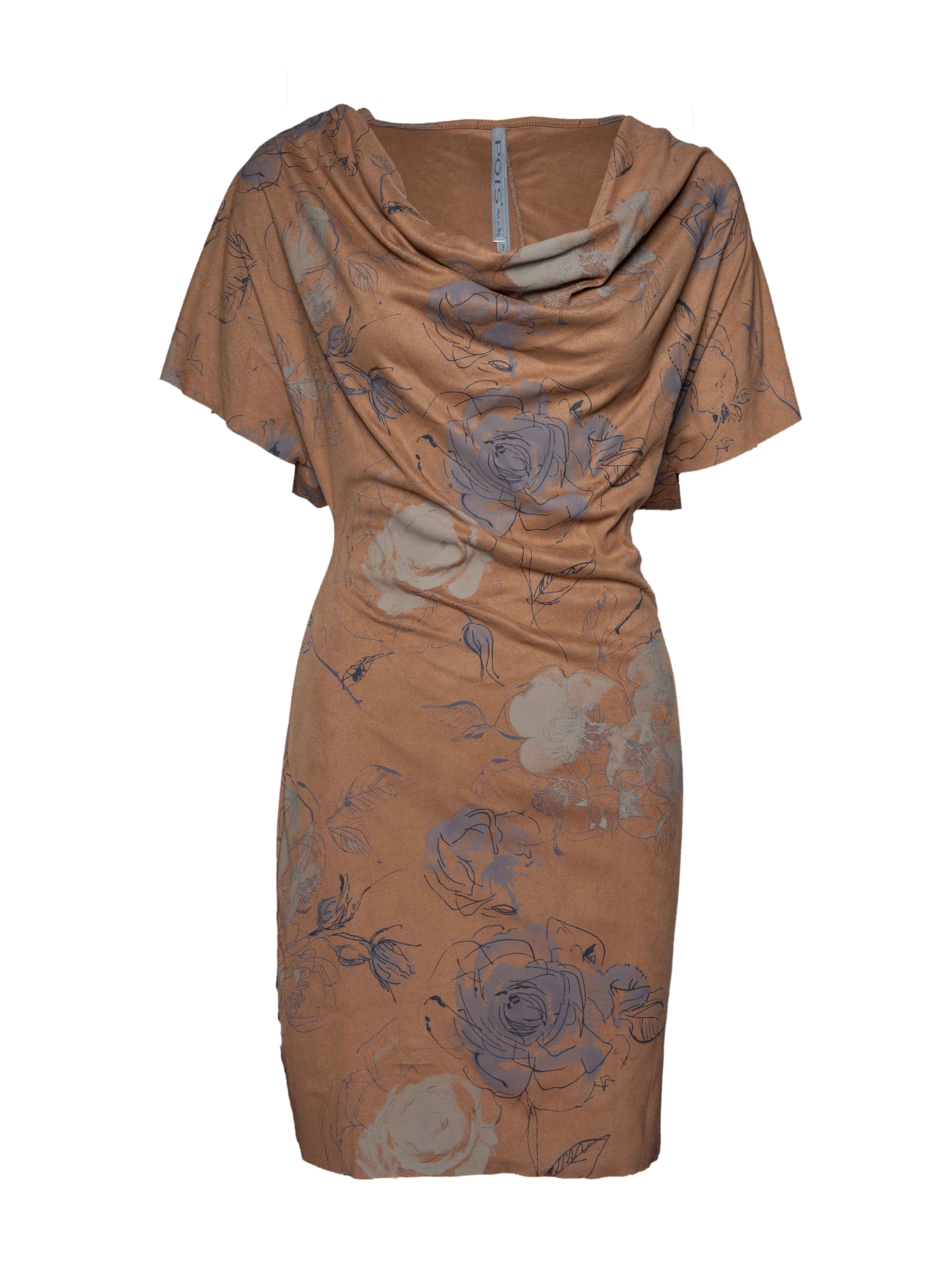 • Printed suede dress with cowl neck is soft, supple, and easy to wear
