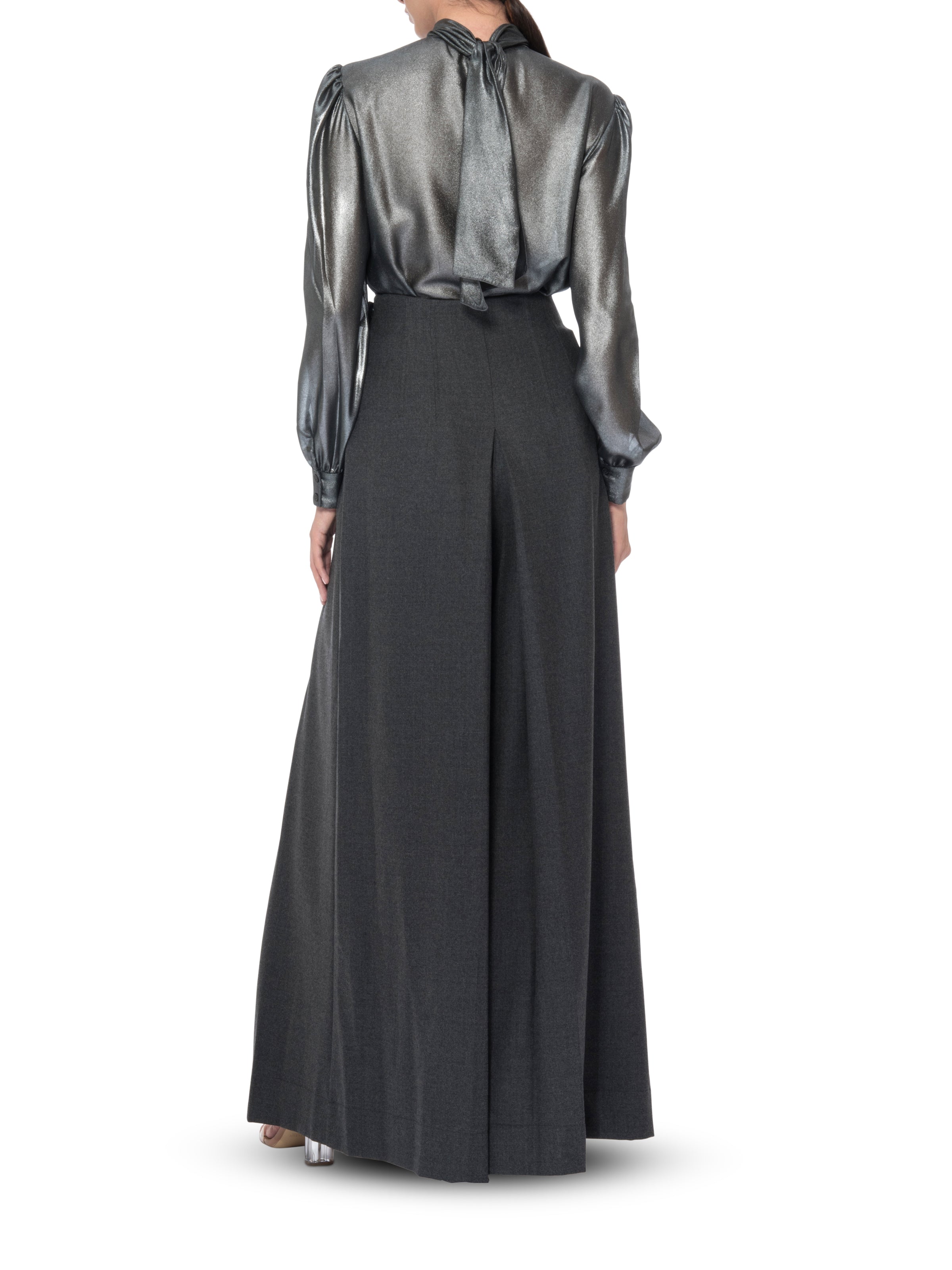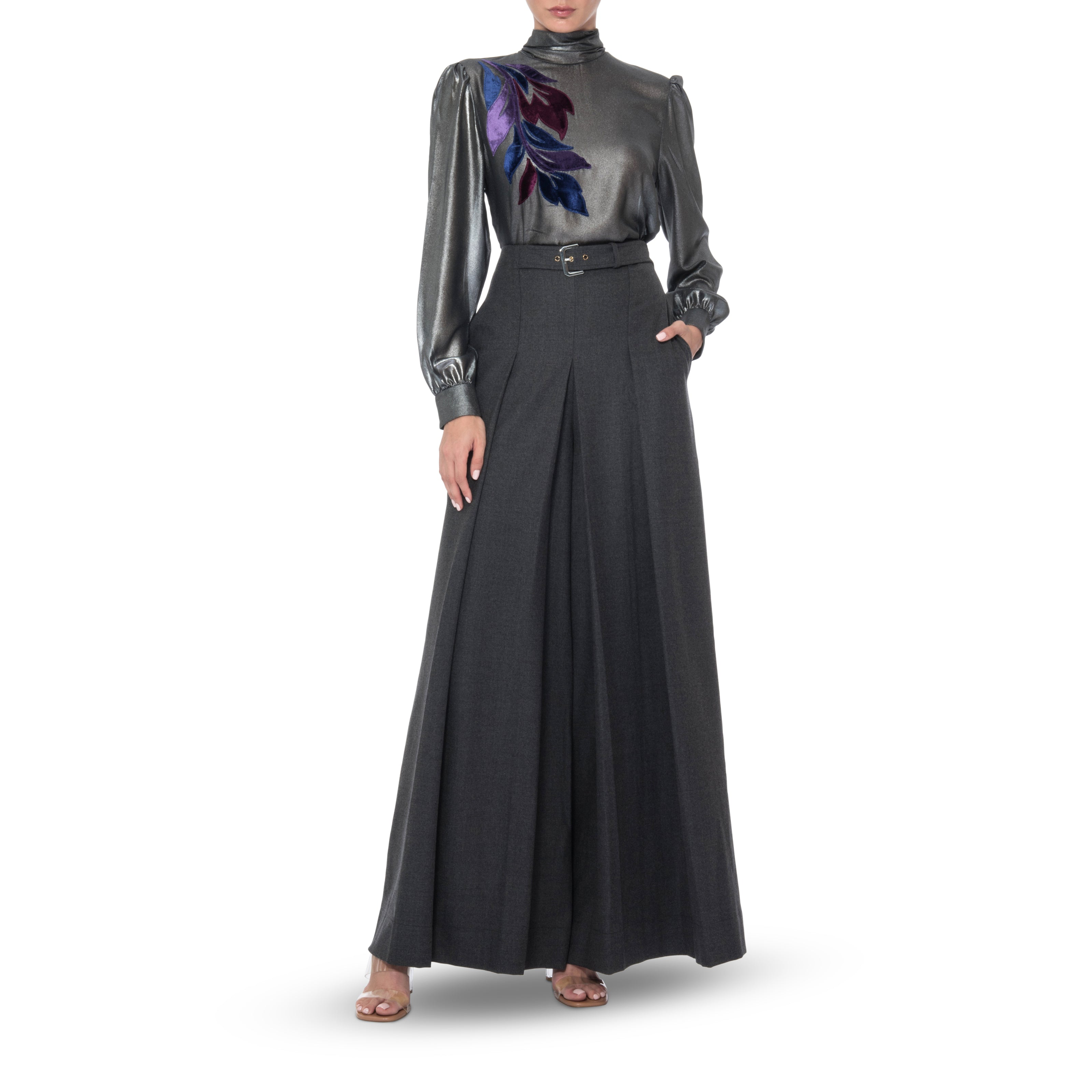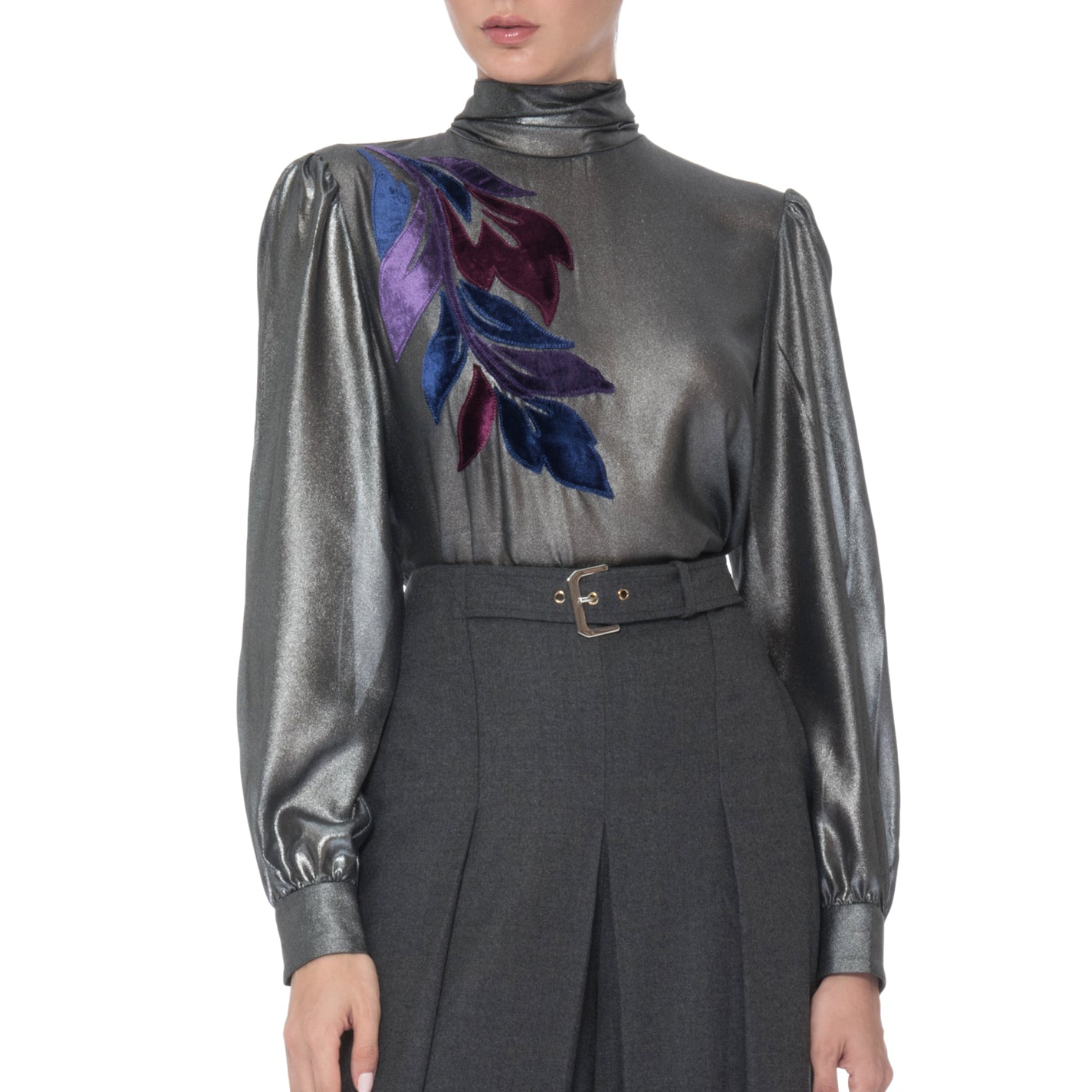 Dark Grey Leaf Pattern Metallic Finish Blouse