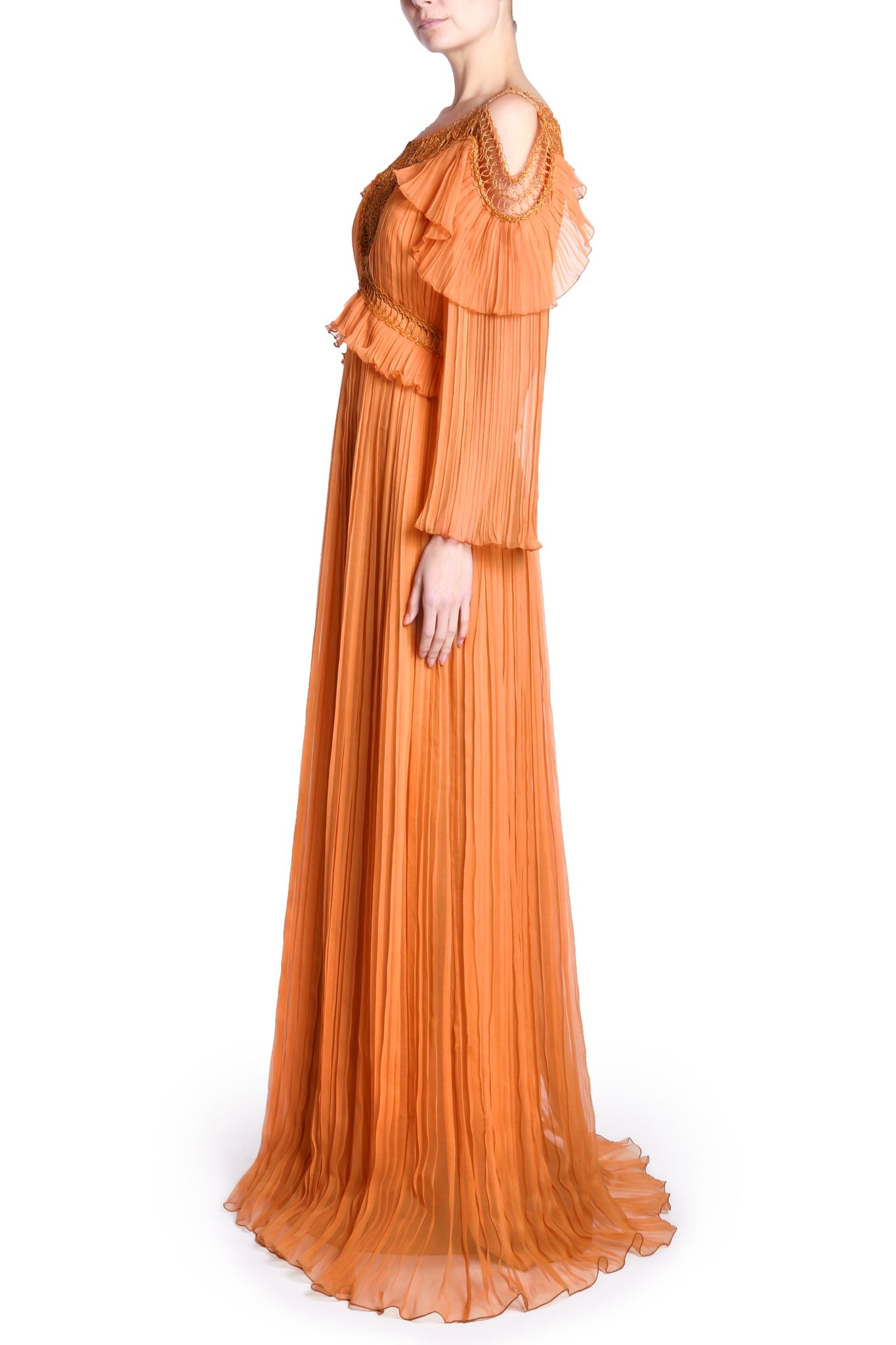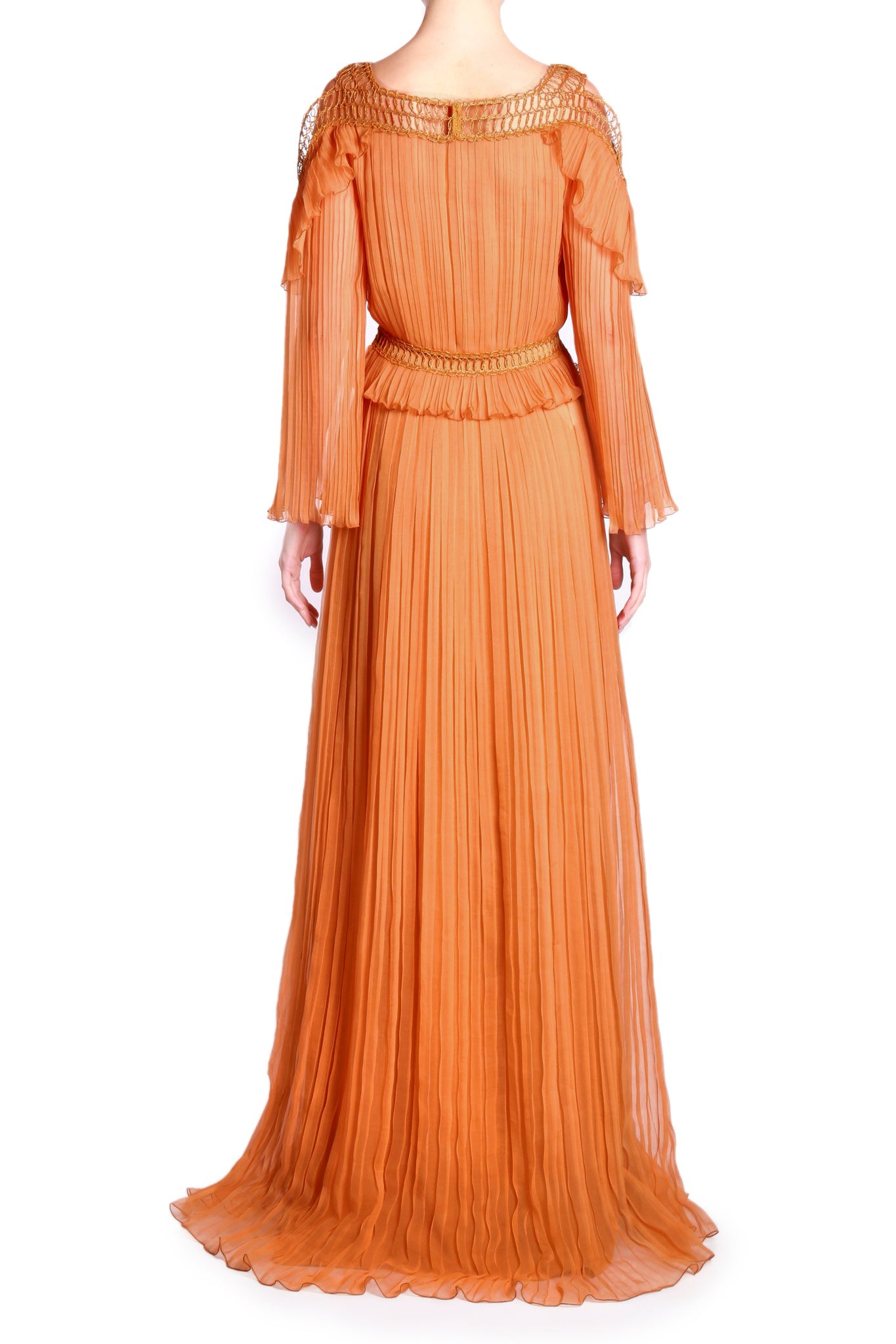 Orange Pleated Long Sleeves Dress
