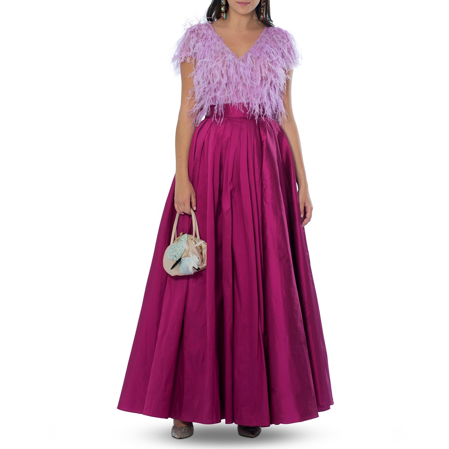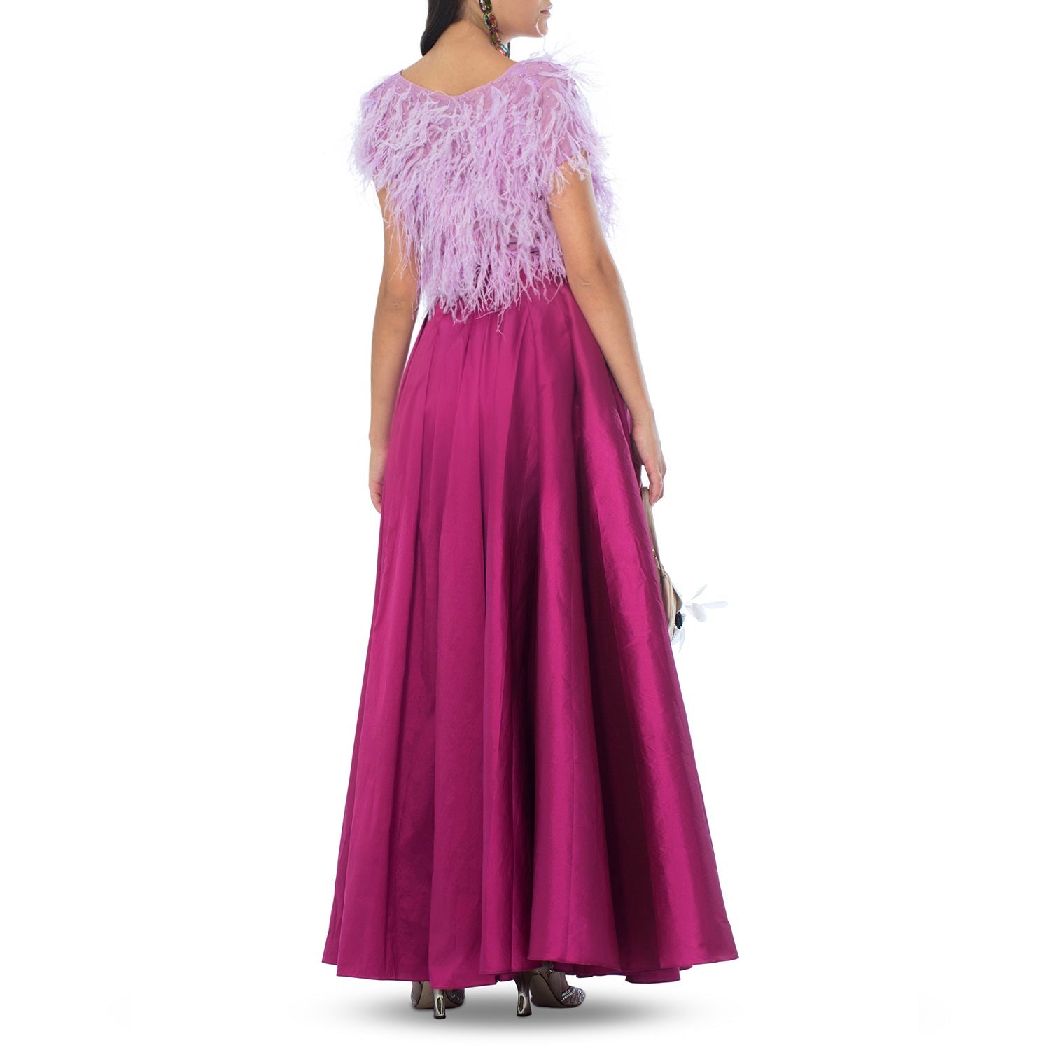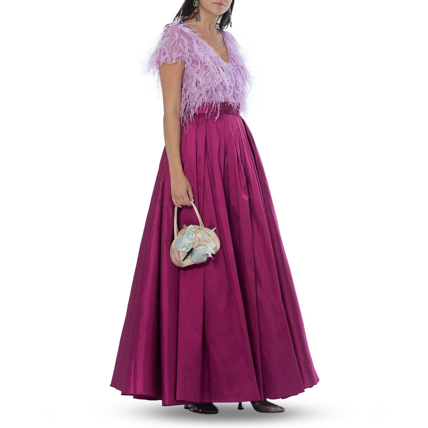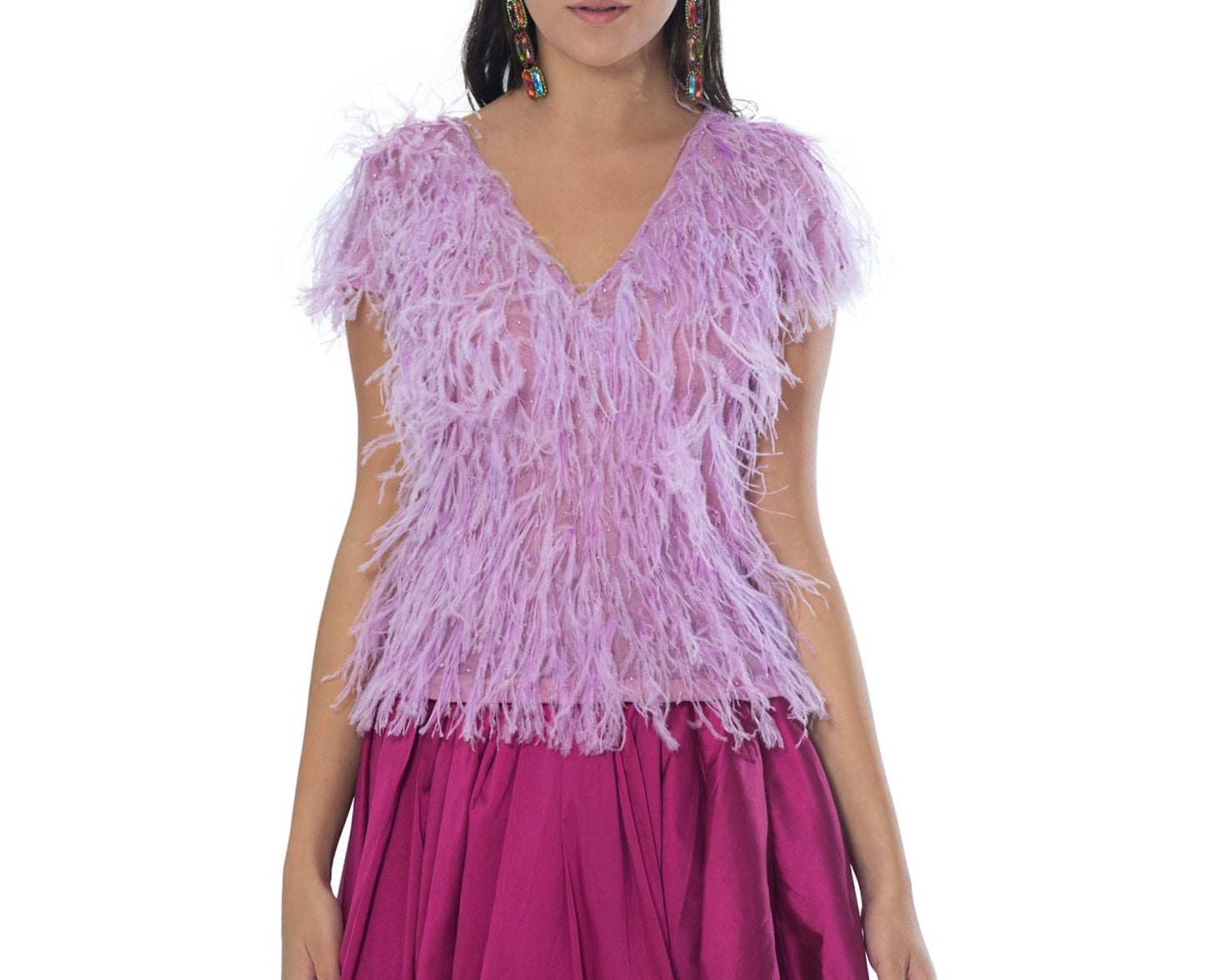 - Genuine maribou feathers dangle from delicate beads all over this svelte jersey top