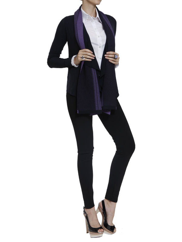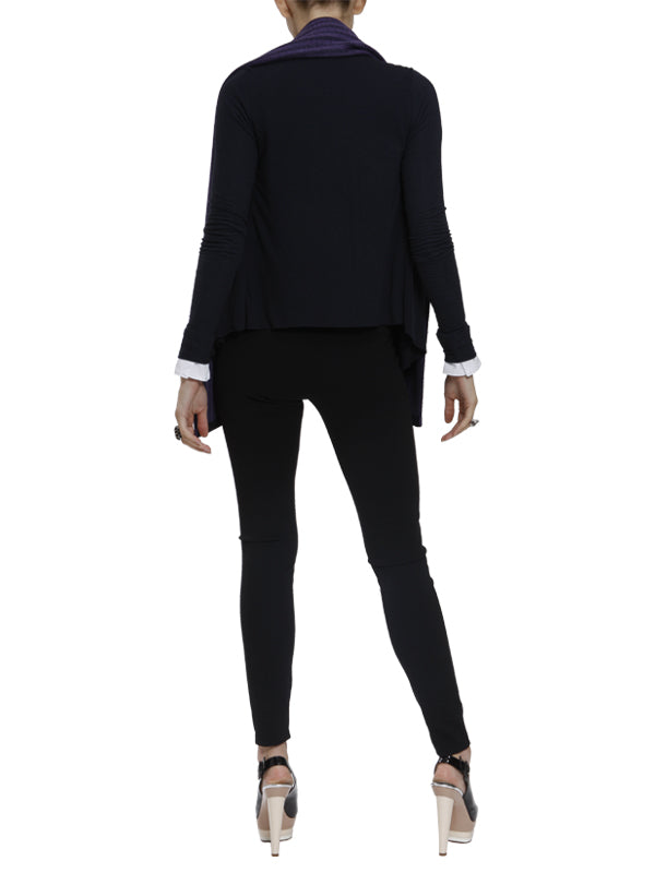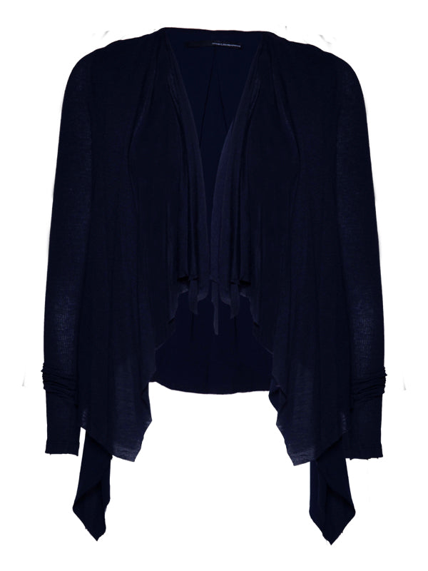 Double layered wraparound cardigan with ribbed cuffs. 66% viscose, 30% wool, 4% elastin, +100% polyester.