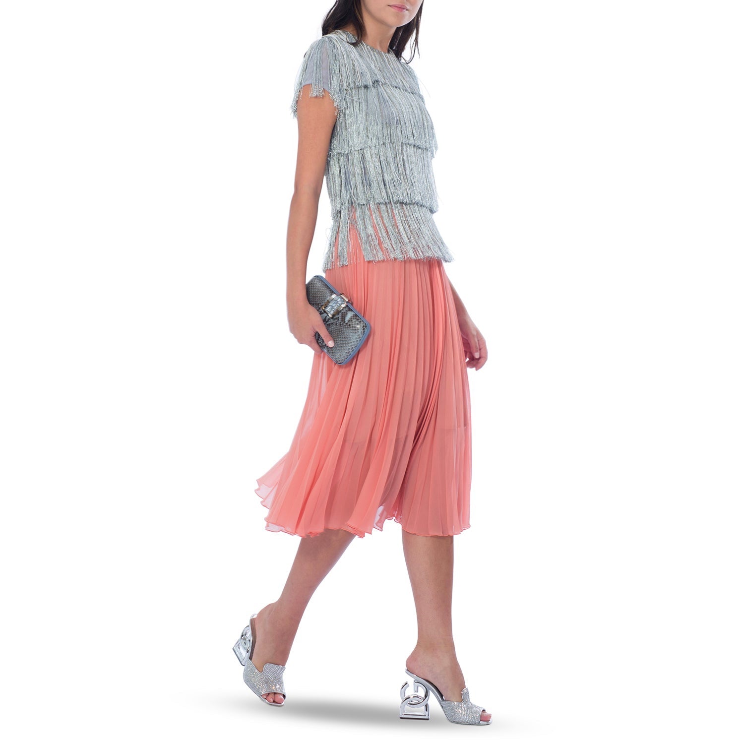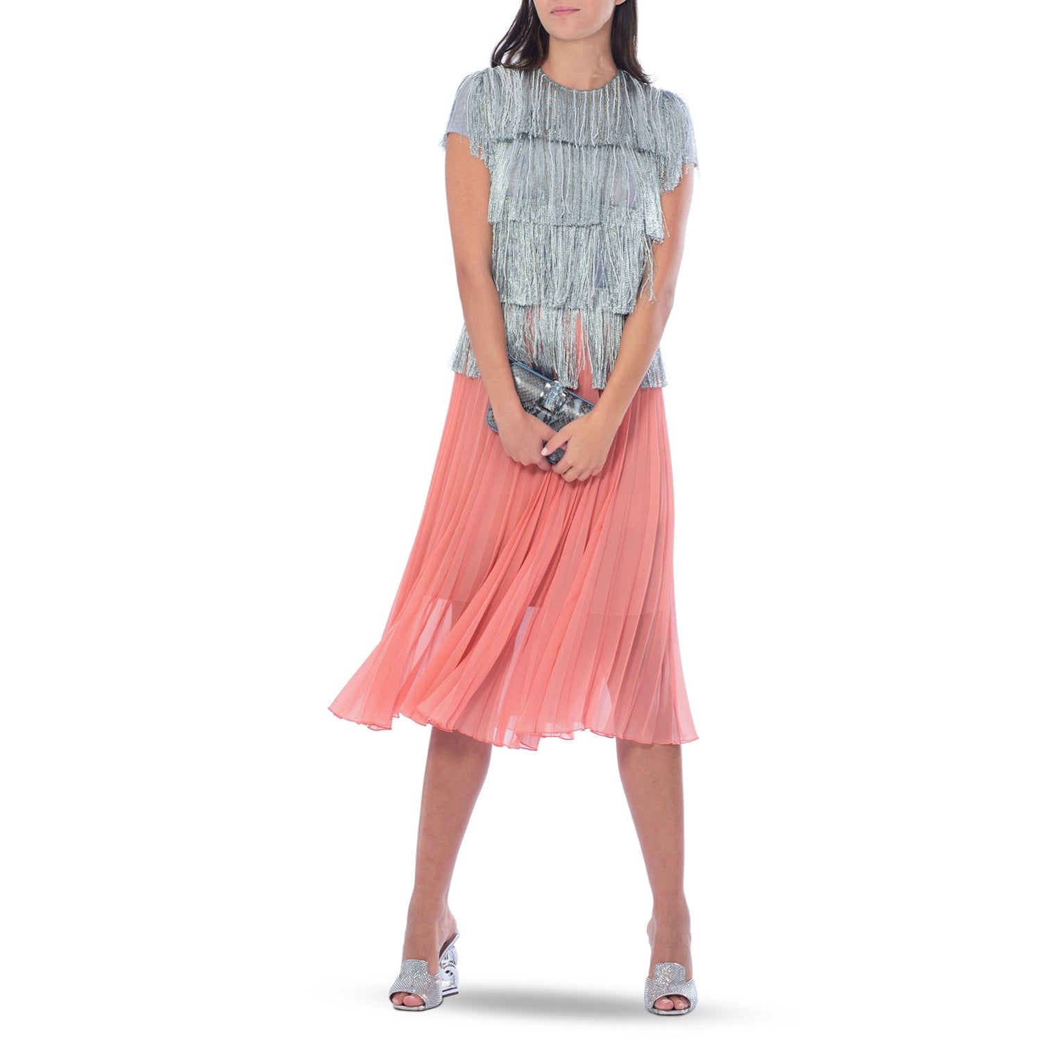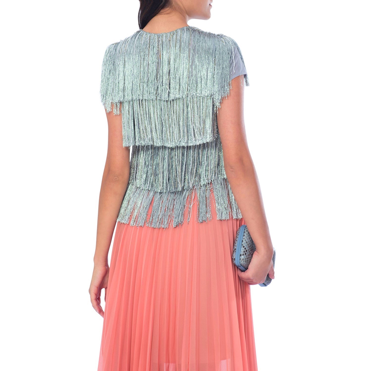 - Fringe top made from hand beaded strands of pearls and chain swing from our stretchy top. Elegant and the life of the party, pair with jeans for a fun night out or one of our taffeta skirts for a more formal affair.