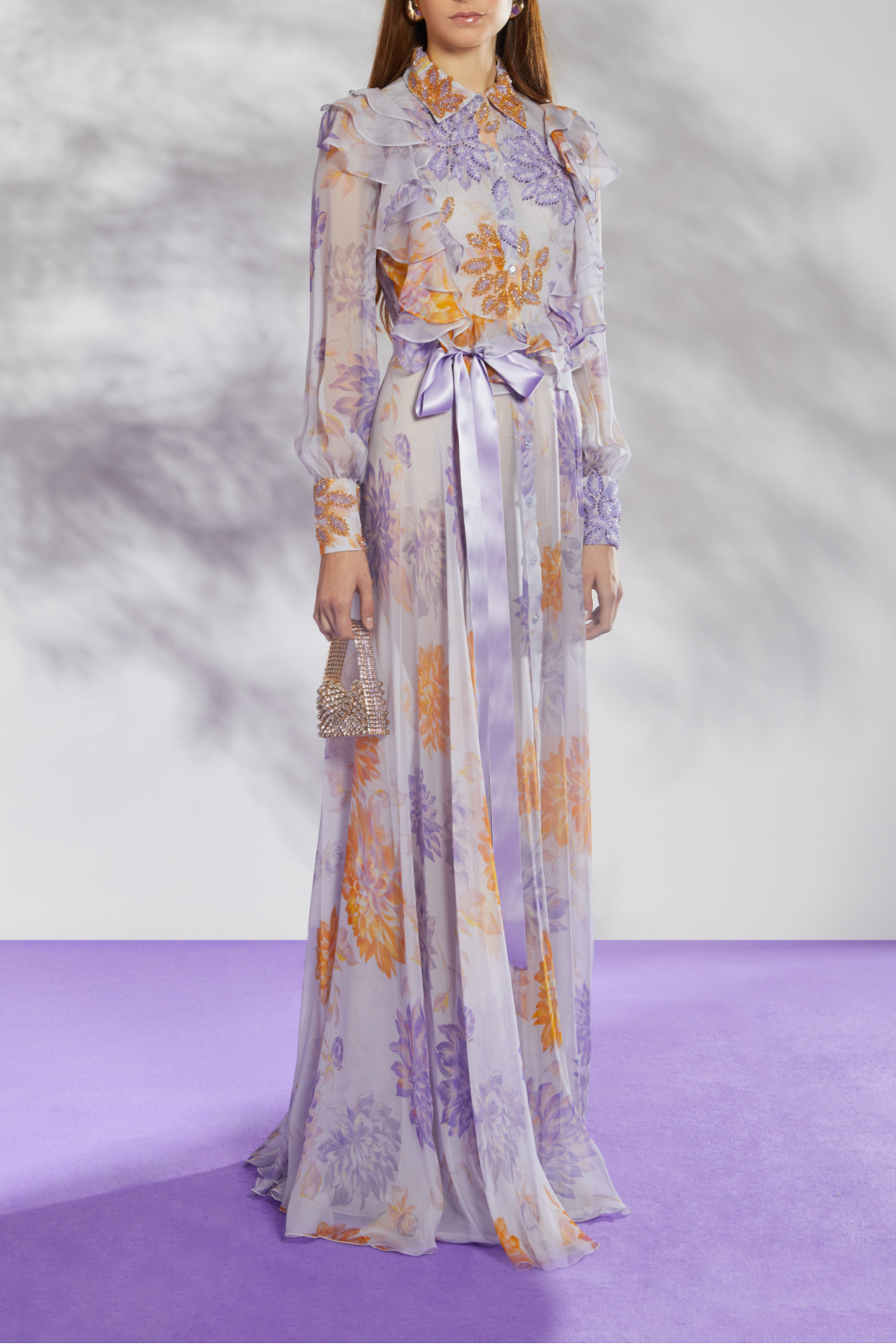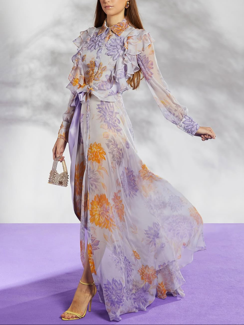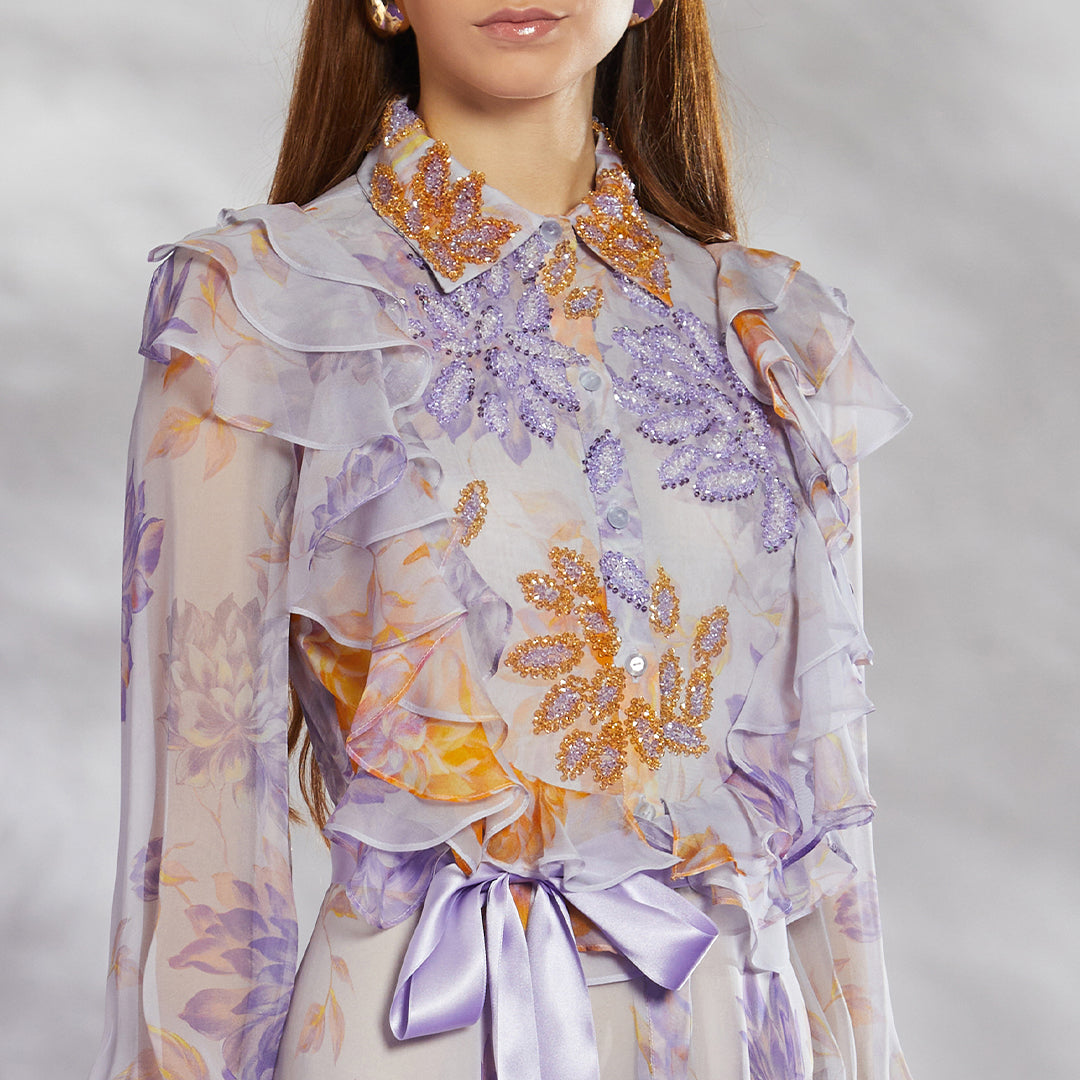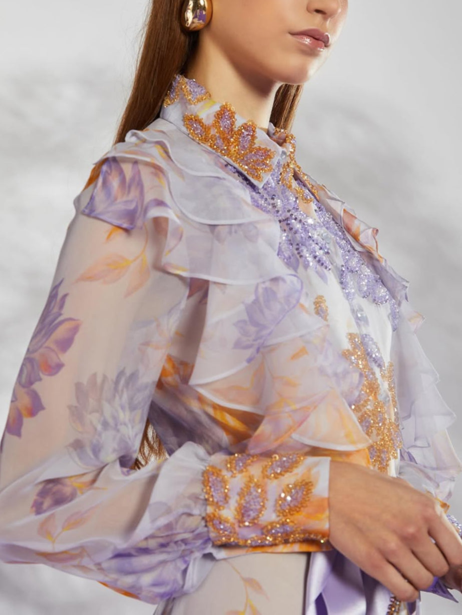 - Sleeves: Long sleeves with ruffle detailing